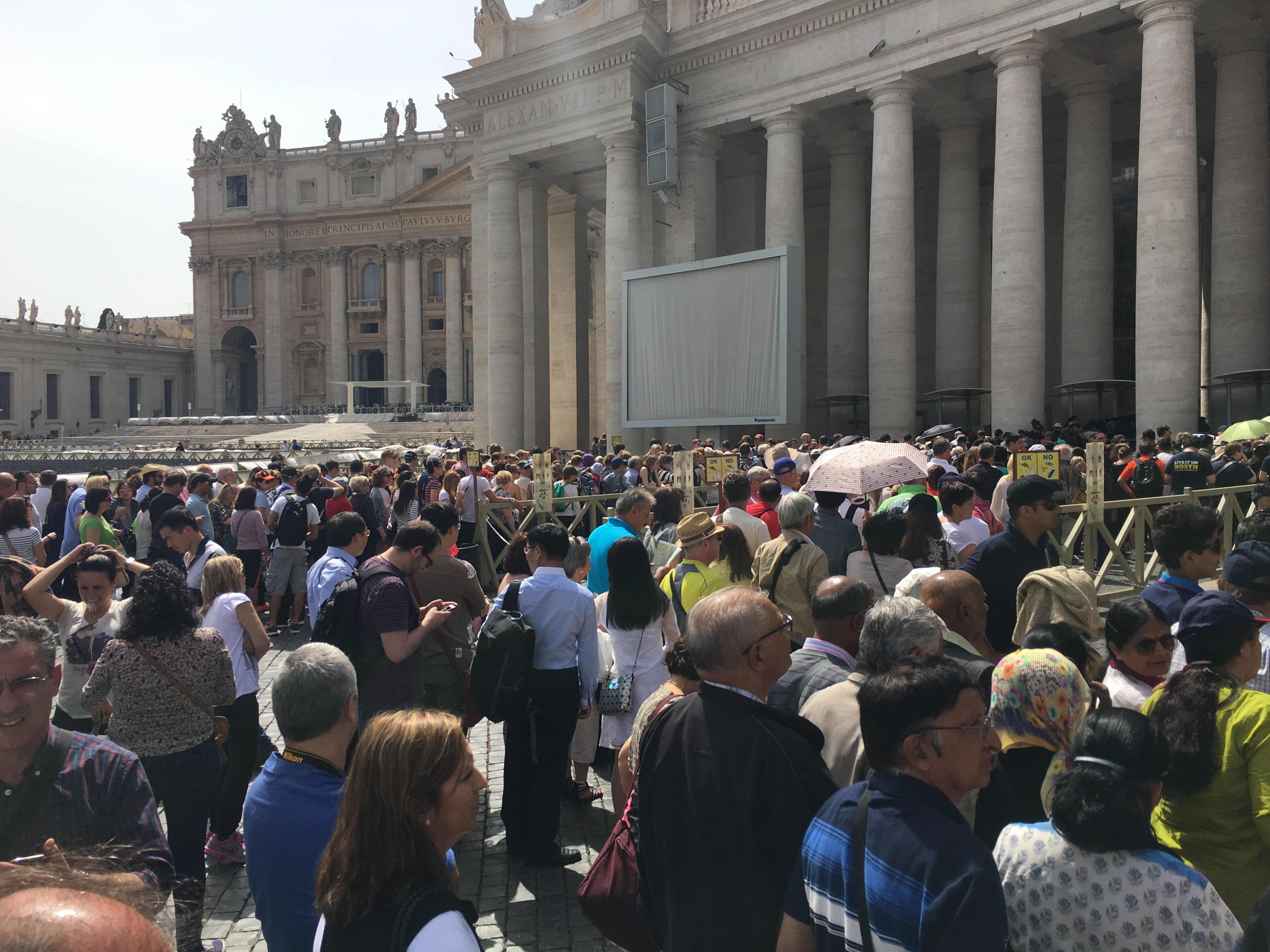 After the gallery it was on to Saint Peter’s. Entry was free, but there were queues. Not the worst they can be, but still 30 minutes. Even a picture does not really capture the size of the crowds or the size of the space. In the left side of this image in the distance you can see seating that’ll be used tomorrow for the Papal Audience.