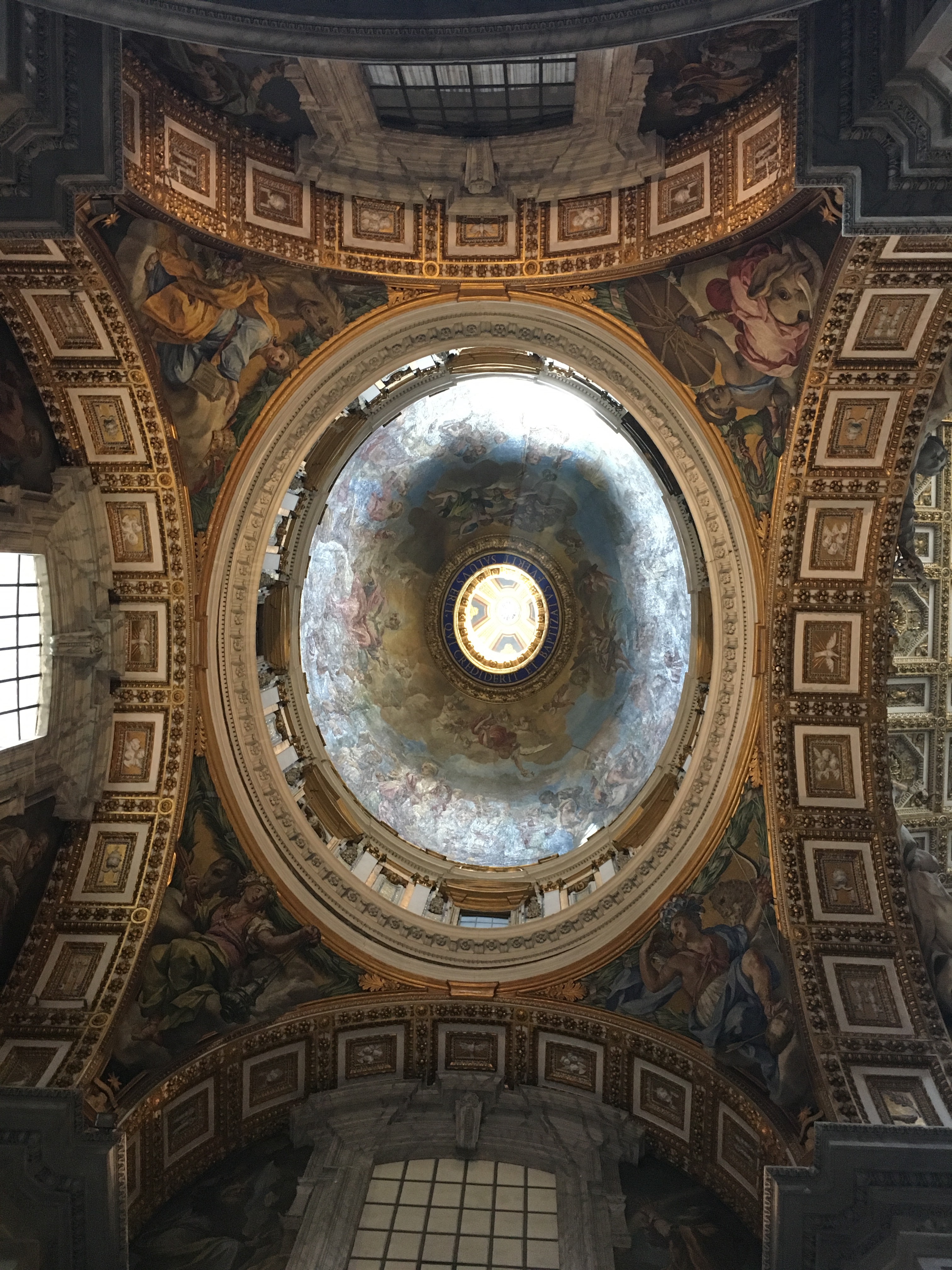 Everyone heads for the dome at Saint Peters. You cannot standing directly under it as it is roped off, but we did get very good views. The main dome is not the only dome to see. This picture shows one of one of the many smaller domes. All are beautifully decorated.
