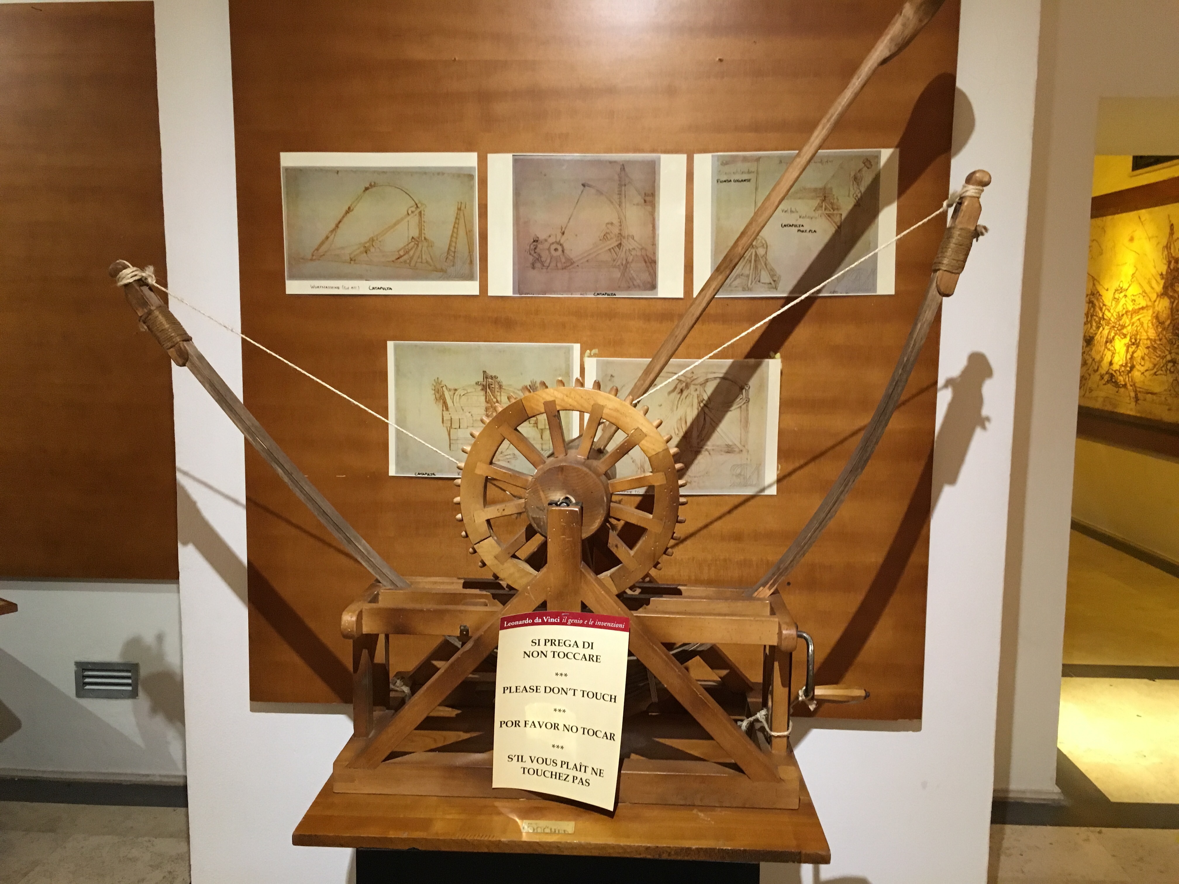 Three minutes walk from our apartment in Rome was an exhibition of Leonardo da Vinci’s machines. I could not resist, paid the €9 ticket price, and spent the next 40 minutes in geek heaven.