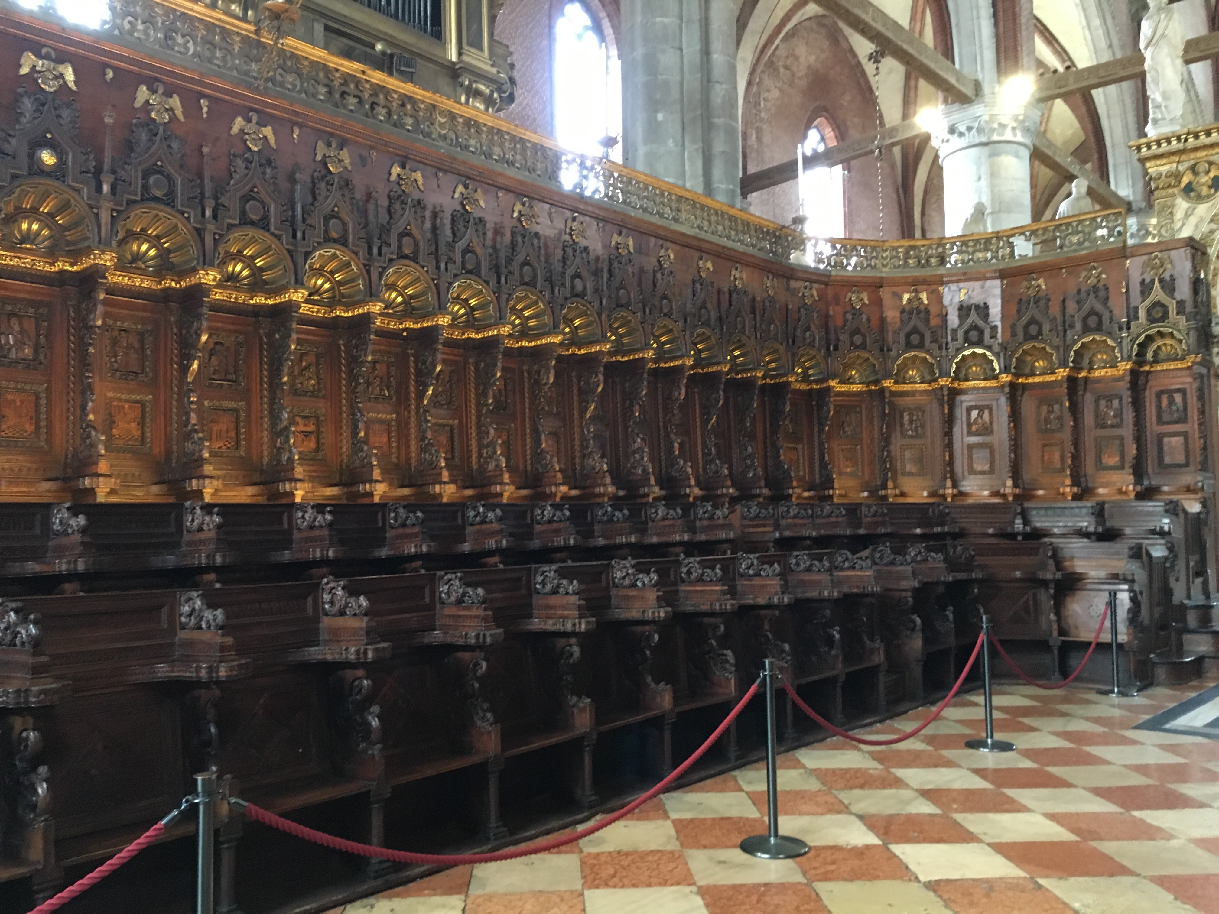The choir stalls, by Marco Cozzi, are incredibly detailed, with each seat having its own individually carved Saint.