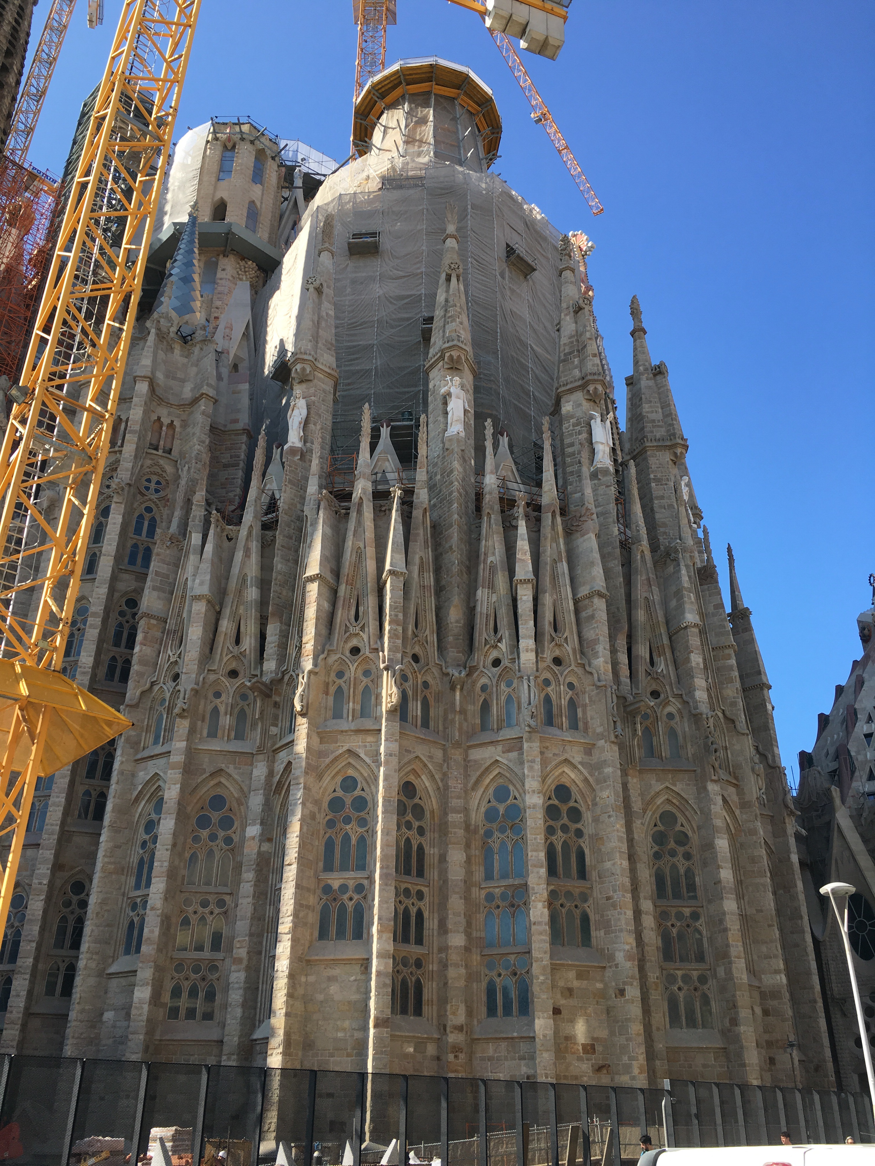 The outside the building is currently dominated by the two facades and eight towers that are complete, or nearly complete – the Nativity Facade and the Passion Facade. Another four towers are to be built at the front of the church above the not-yet-started Glory Facade, making 12 in all, one for each disciple.