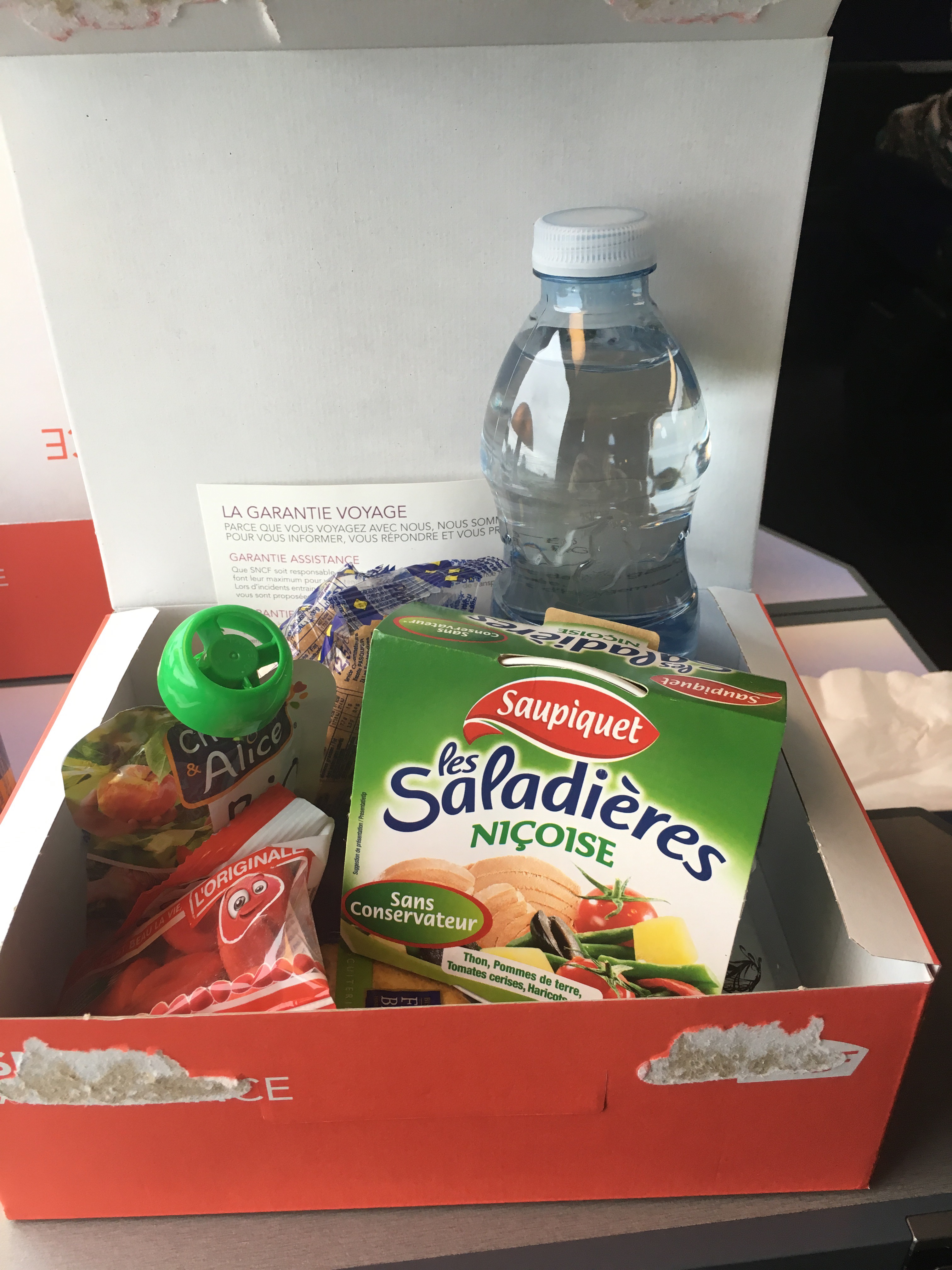 The train staff were very nice, giving lots of updates in French, Spanish and English and handing out this free meal box with an activity book for kids.