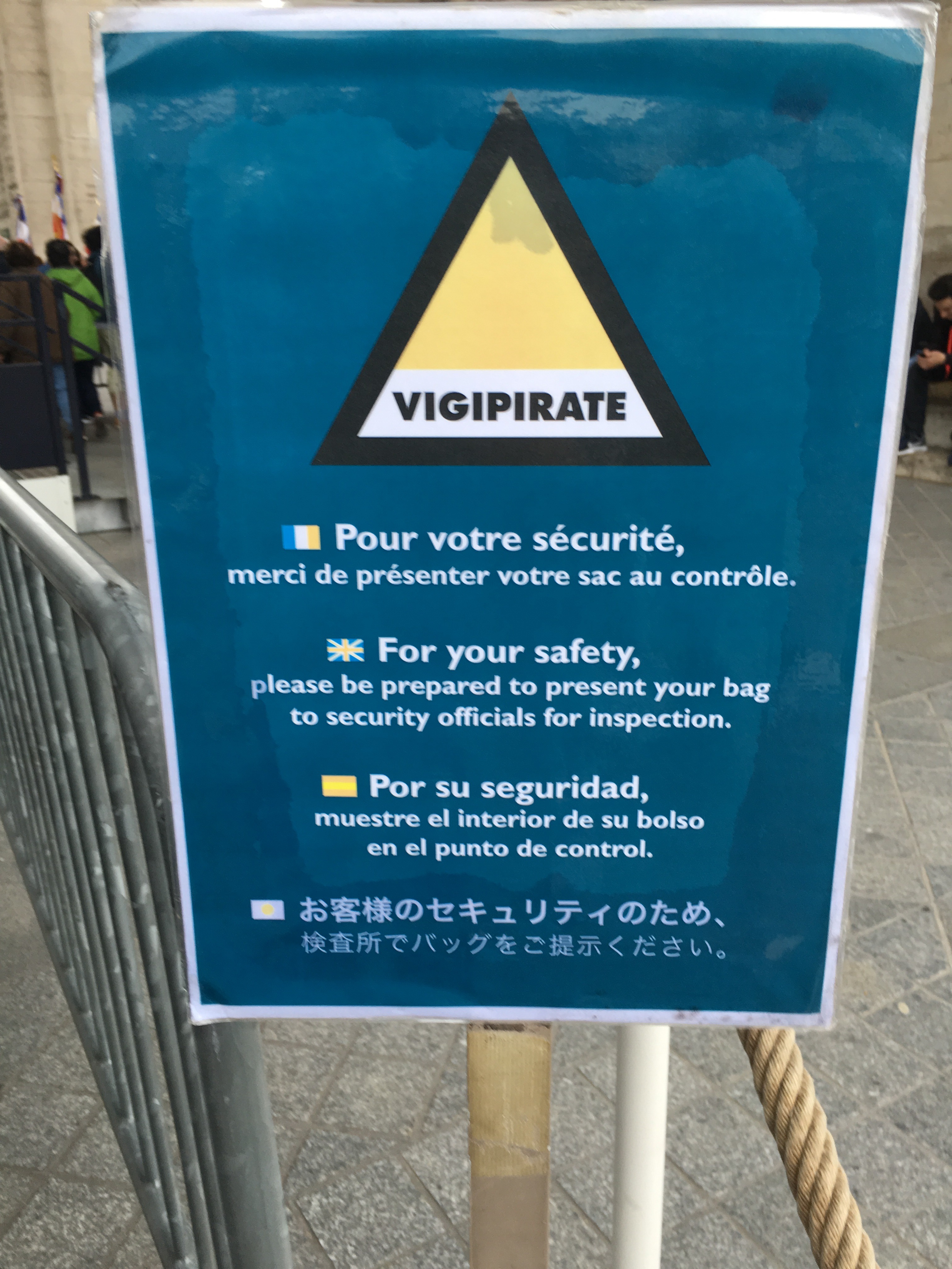 Like most other attractions in Paris there is heightened security – around the Arc there were soldiers with assault weapons, and our bags were subject to search.