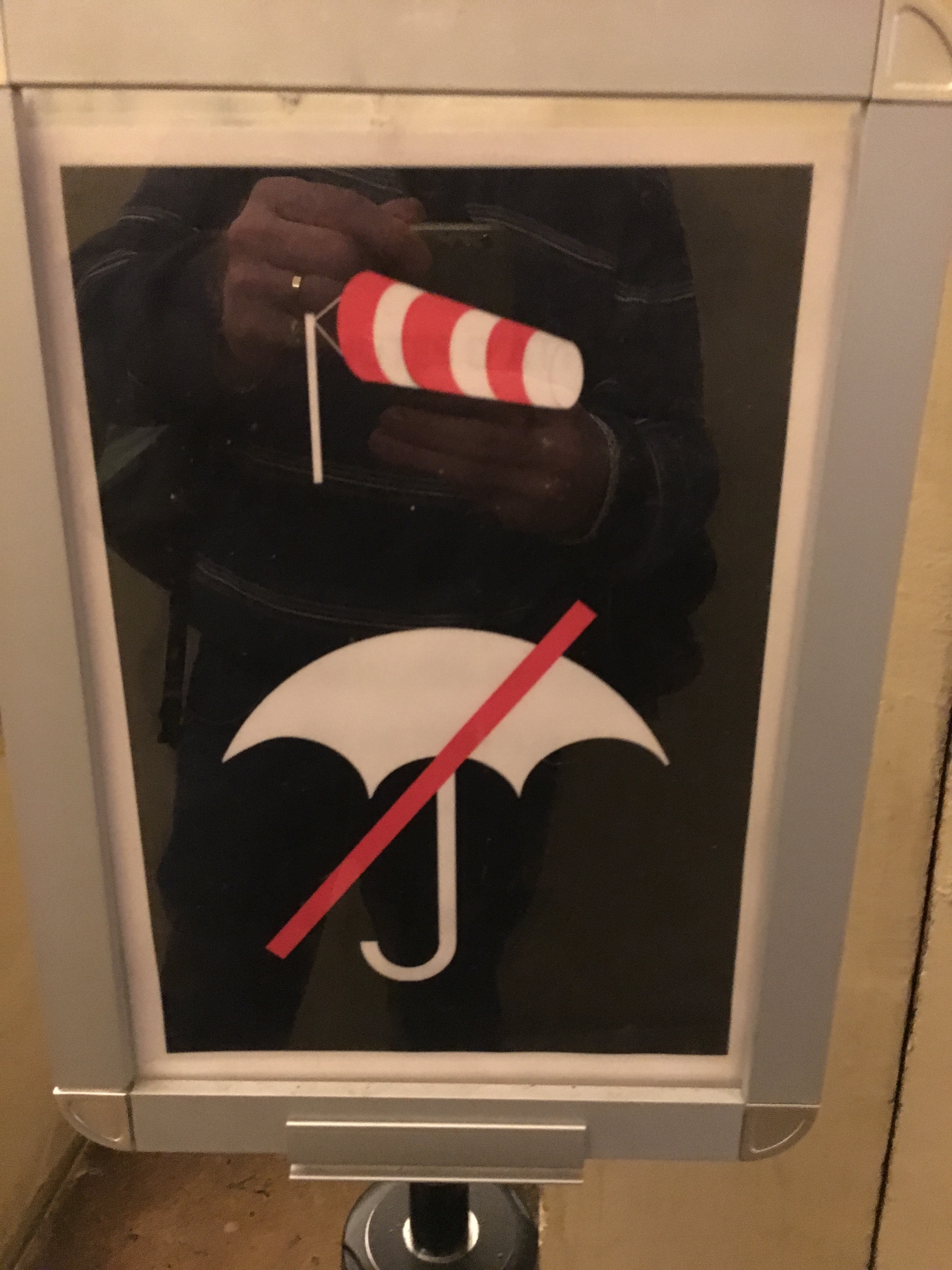 There are some rooms near the top with commemorative information before the final few flights to the roof. Just before that there is a warning sign, one fit for any Wellington street, before you exit to the roof. No windy, umbrellas!