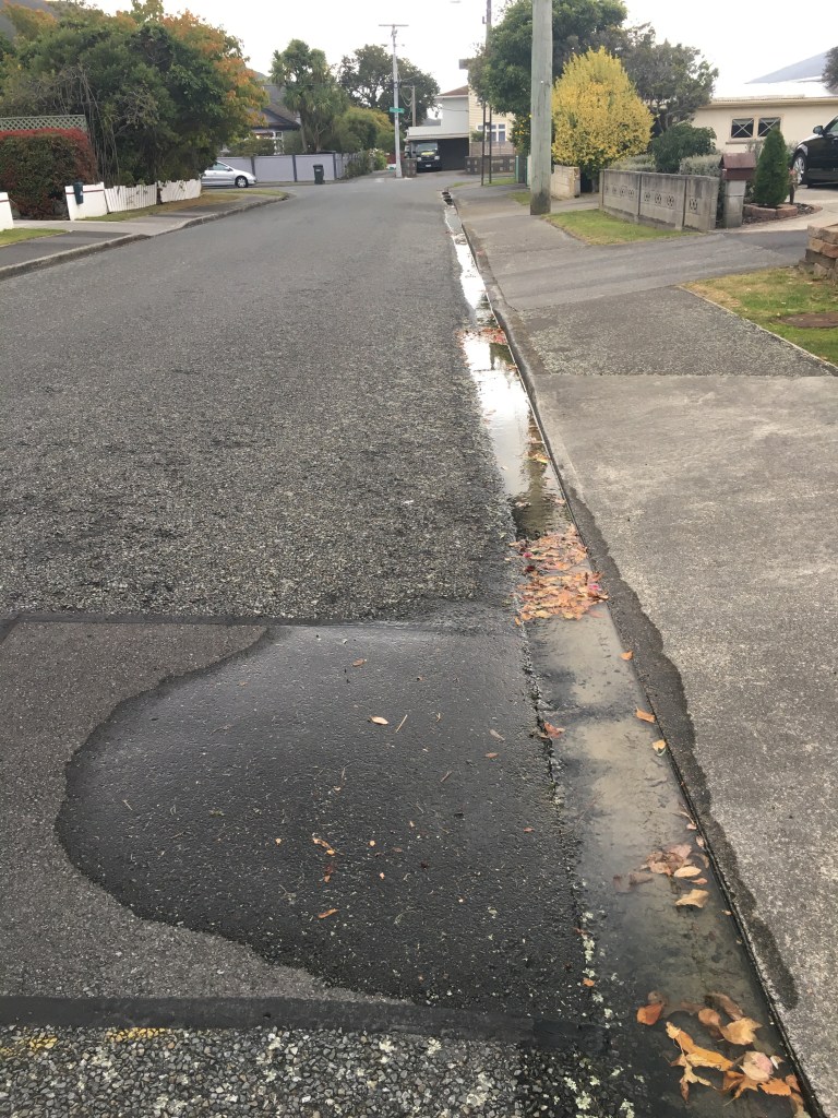 A solitary tui was sitting on a power line, listening intently to the call of a prospective mate. A blackbird was foraging for bugs in a crack on the pavement. It looked like he’d been at it a while, undisturbed.